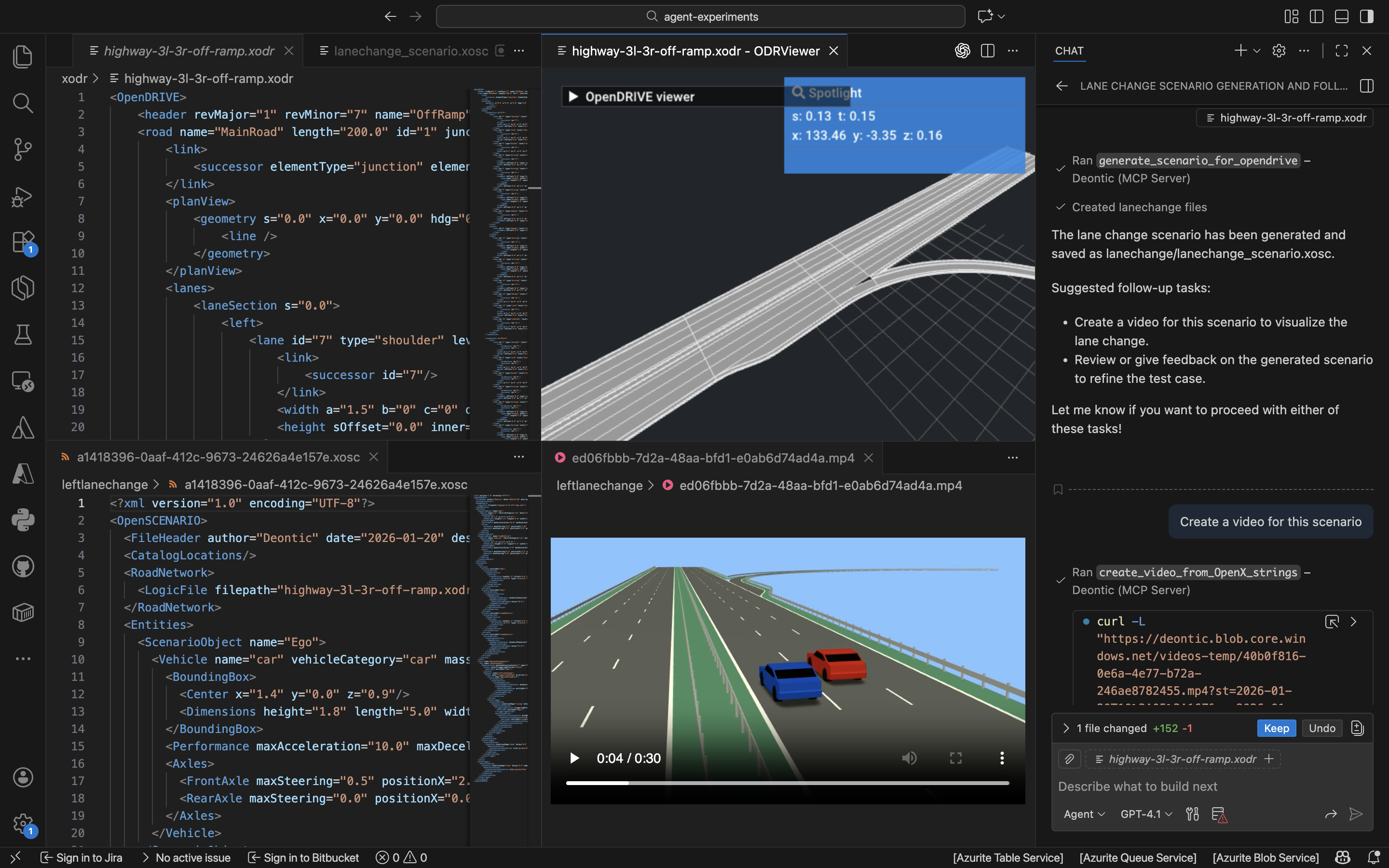 Deontic delivers generative AI workflows and intelligent agents to accelerate validation and verification for ADAS and autonomous driving. Our tools transform manual scenario development into rapid, scalable simulations — saving time, cost, and effort for mobility innovators.